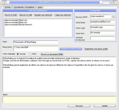 Charger une liste de destinataires, préparer votre message au format texte ou HTML, rajouter des pièces jointes et cliquer sur envoyer !