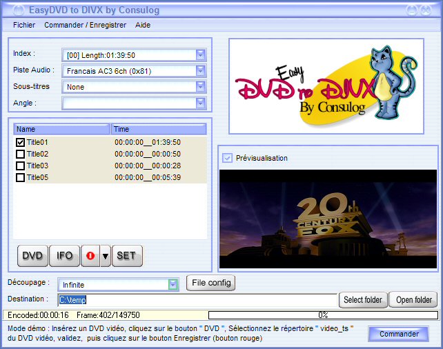- Transférer vos DVD au format AVI (divx) ou MPEG